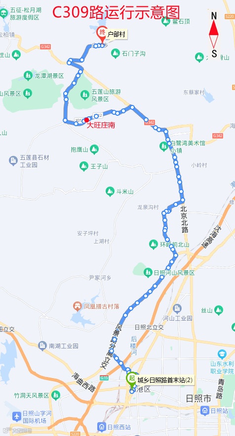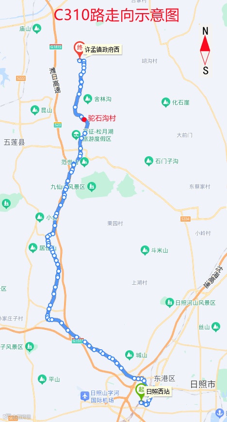 乘坐公交线路:C310路(日照西站-许孟)