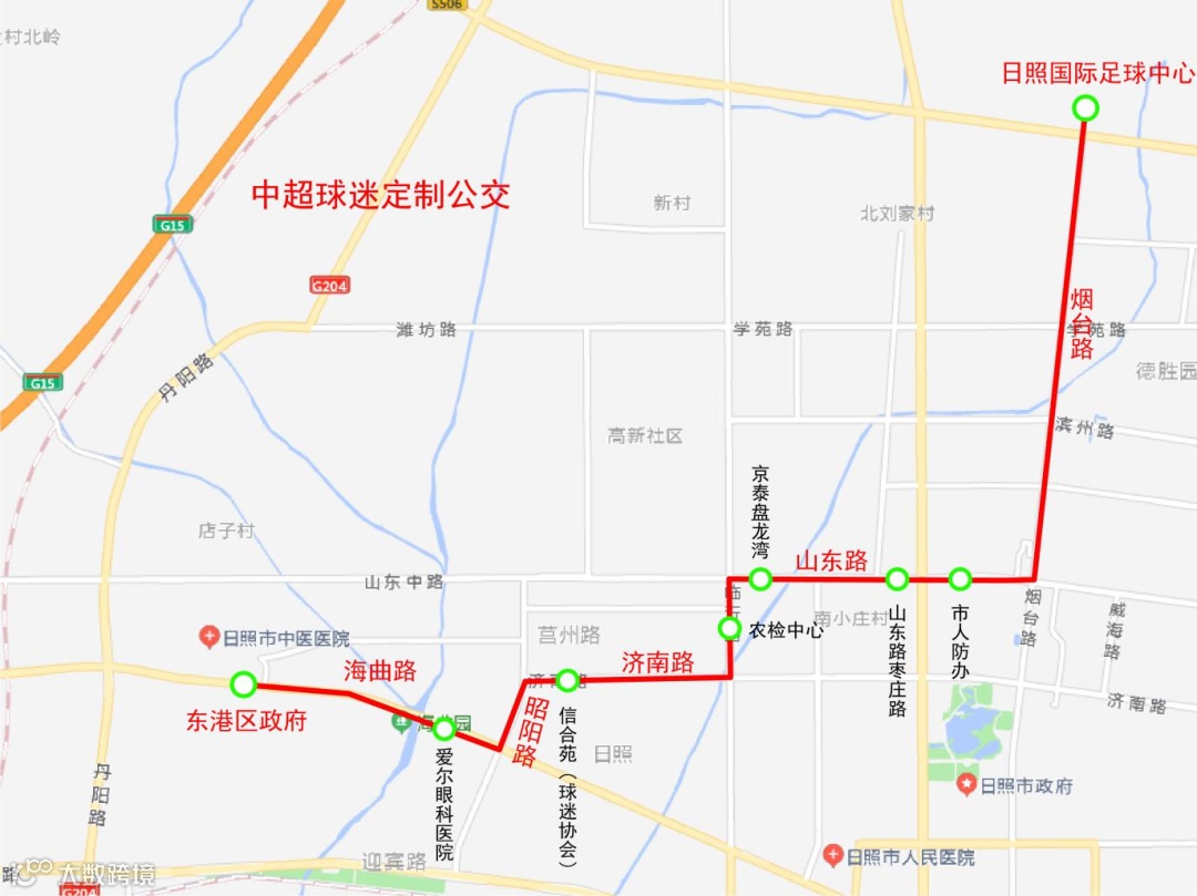 (二)中超球迷定制公交车辆停放规划路(东门—规划路)路段,在日照国际足球中心东门北侧设置中超球迷定制公交临时站。赛事结束后,线路在“中超球迷定制公交临时站”站发车。为使球迷能够及时返回,线路停靠除烟台路、山海路以外的沿途公交站点(烟台路的乘客可乘坐11路、18路)。