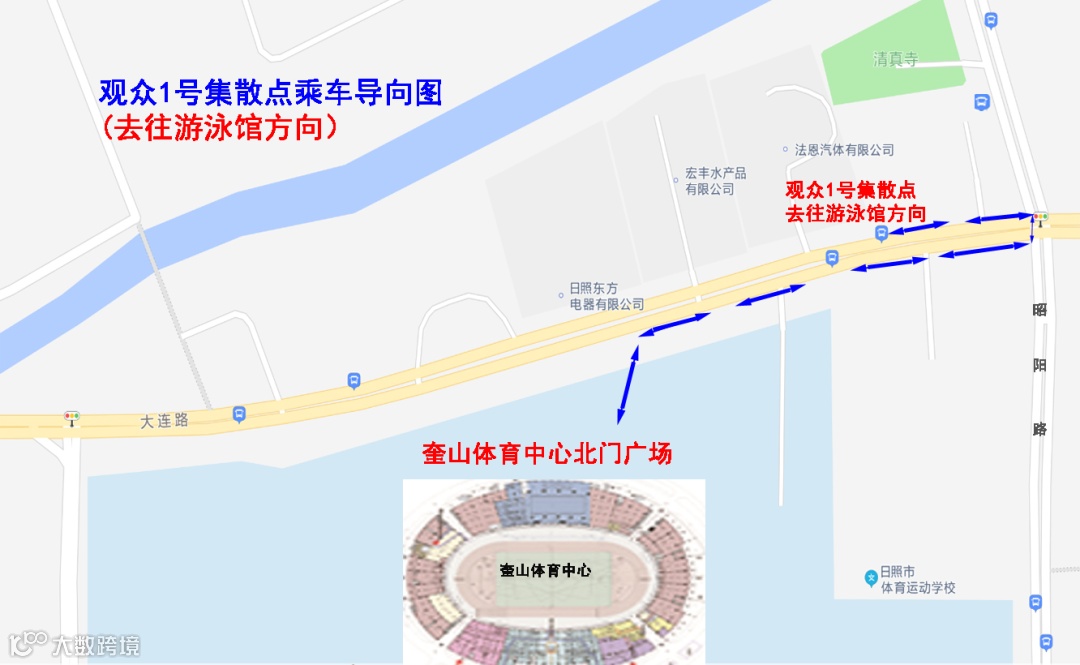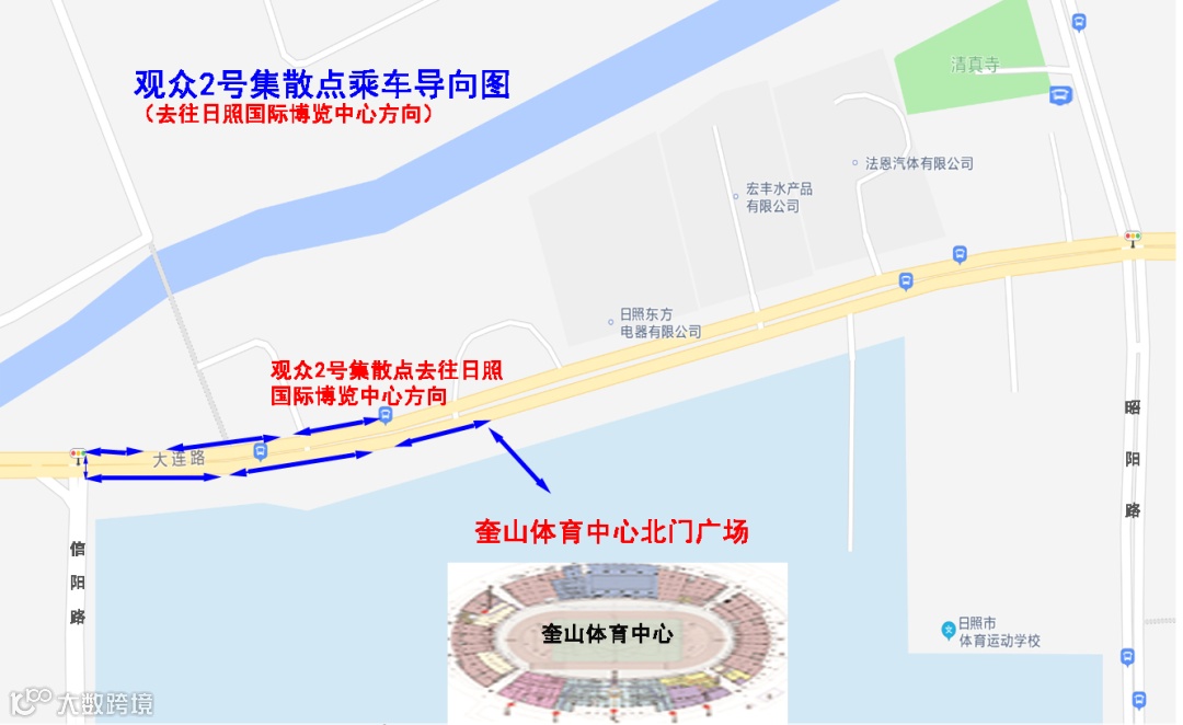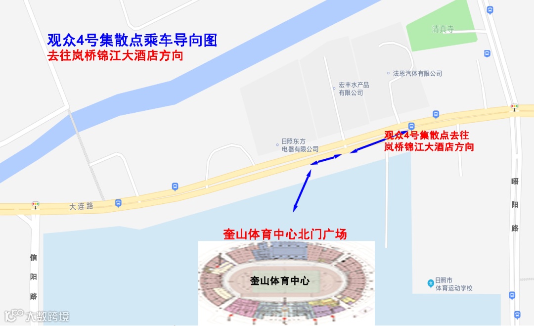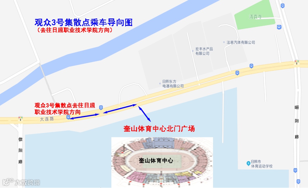 1.会展中心(车辆停放北京路会展中心广场):17:00、17:30、18:00分别自会展中心广场发车直达奎山体育中心2号观众集散点(大连路奎山体育中心公交站)。