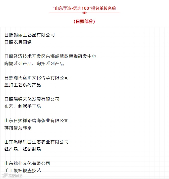 荣获“山东手造·优选100”提名单位