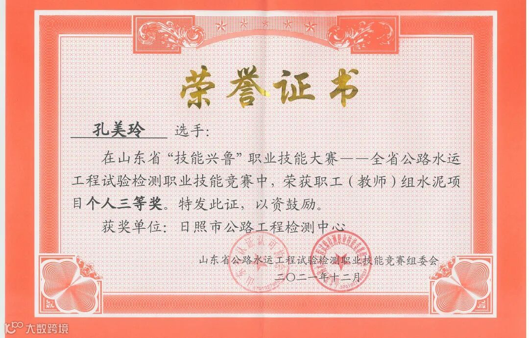 建设公司在2021年山东省“技能兴鲁”职业技能大赛——山东省公路水运工程试验检测职业技能竞赛上斩获多个奖项