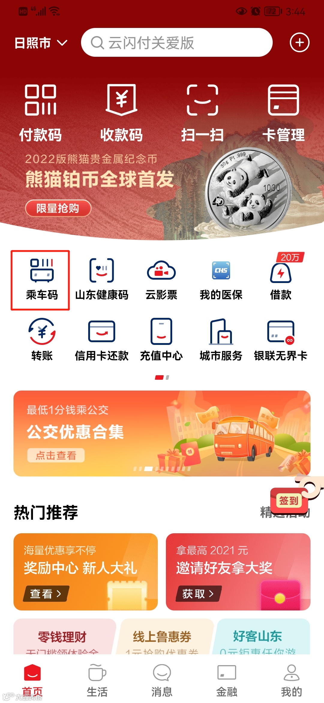 日照交通能源发展集团经测试运行,自2021年11月25日起,日照公交银联扫码乘车功能全线开通,您只需下载云闪付APP,领取并打开乘车码,即可扫码乘坐市区公交、城乡公交。市区公交票价1元/次,城乡公交3元/次。