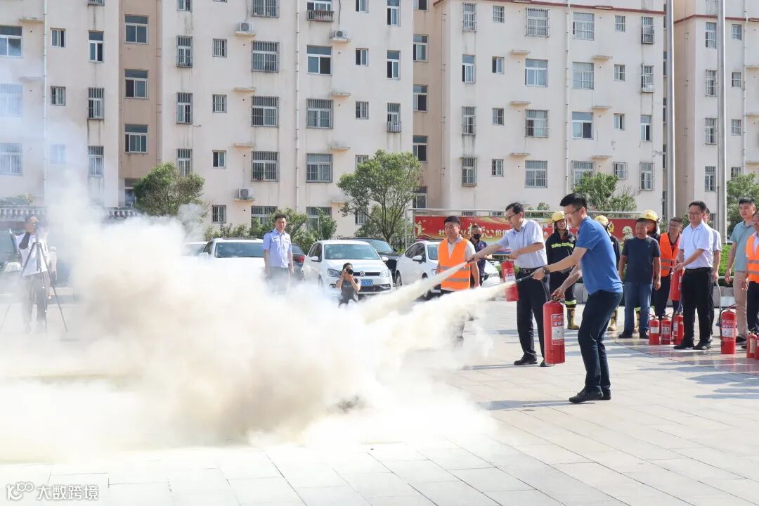在灭火器使用实操演练中,专业技术人员讲解了灭火器的原理和使用方法,并指导人员进行实际操作,对预设火焰进行扑灭,通过实战促进了消防技能提升。