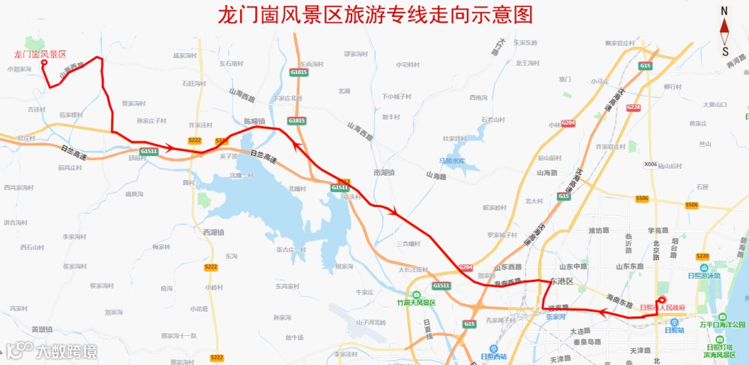 线路走向:由市政府广场始发,经北京路、迎宾路、日照路、日照路首末站、海曲路、相家庄、陈疃镇、三庄镇至龙门崮风景区。线路全长48公里,实行一票制,票价3元。