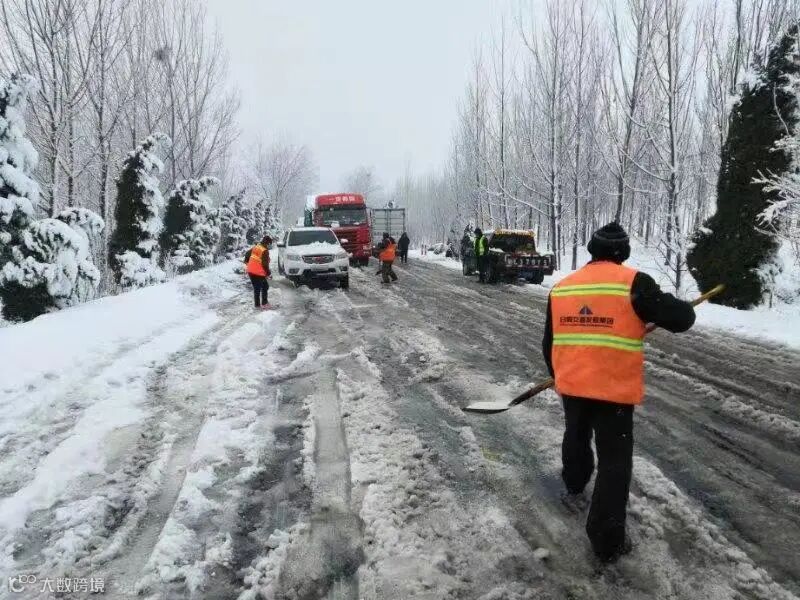 雪情就是命令,集团养护公司迅速行动,及时出动铲雪车在大桥、急弯陡坡处铲雪除冰,在陡坡堵车路段,积极配合交警疏导交通、撒布防滑沙,帮助被困车辆脱险上路,全力保障公路安全畅通。