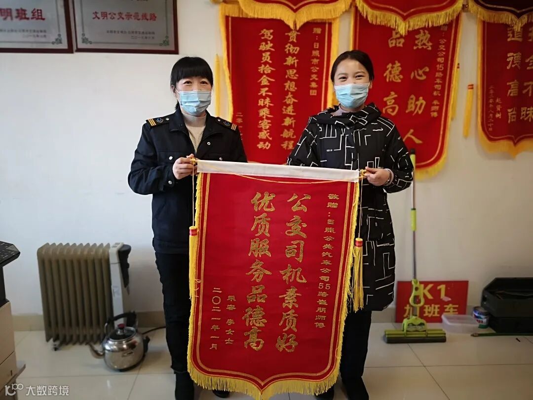 1月18日下午,市民李女士带着一面印有“公交司机素质好 优质服务品德高”的锦旗,前往公共汽车公司奎山工作组感谢55路驾驶员崔朋师傅。