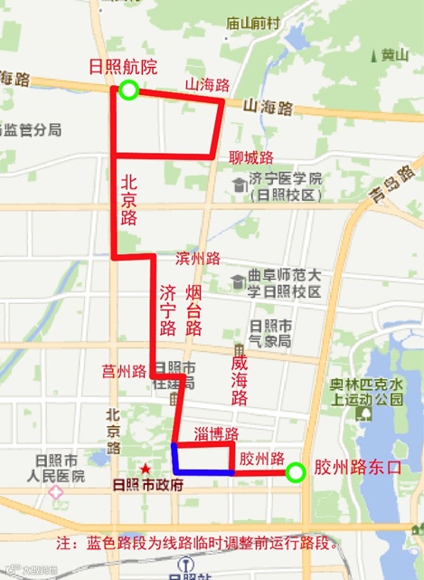线路除临时调整路段以外,其他运行路段不变。线路首末班时间和发车间隔不变,由此给您带来的不便敬请谅解。市民可通过“新出行”APP或者公交服务热线0633-3656666查询公交运行动态。