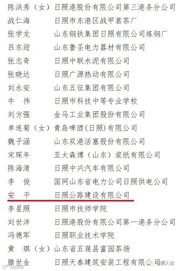 市首席技师”名单,我市20名优秀高技能人才获评“日照市首席技师”。集团建设公司安平获此殊荣。