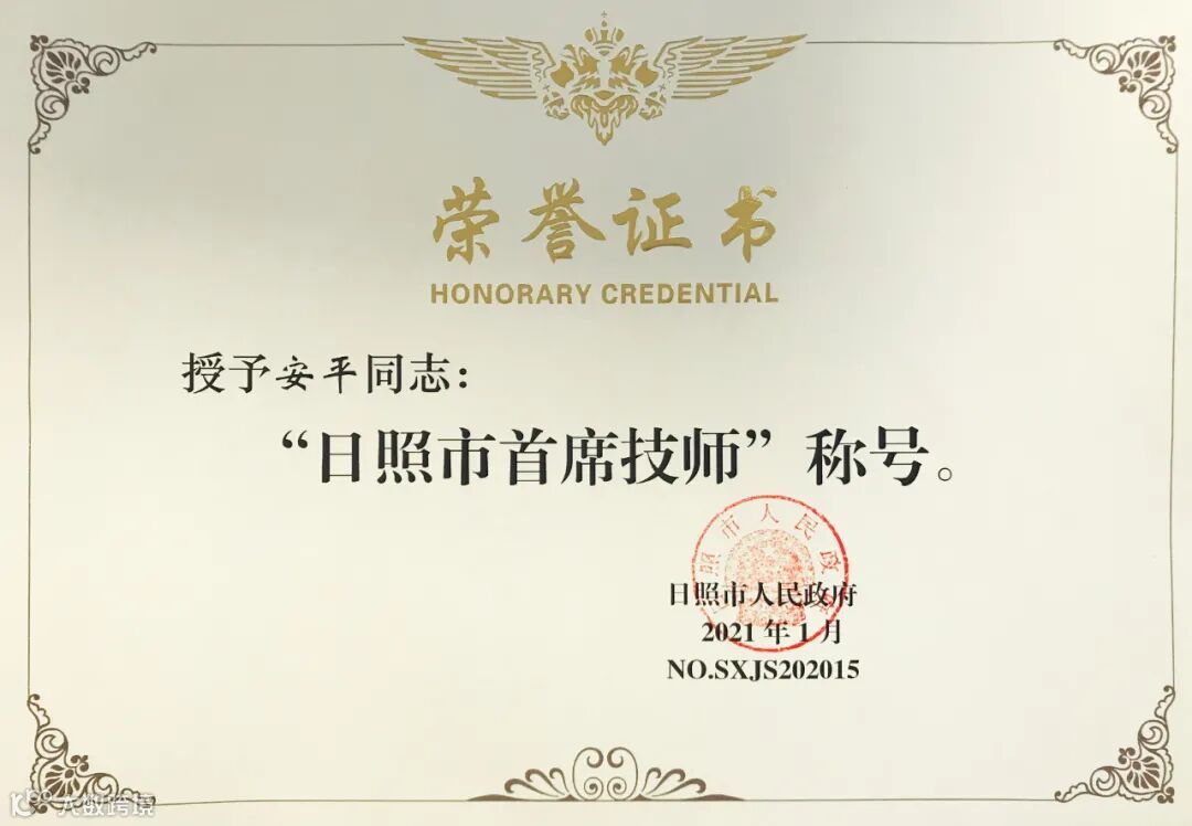 导读:集团建设公司安平同志荣获2020年度“日照市首席技师”