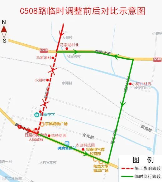 同时,因巨碑线碑廓中学路段道路施工,影响C508路正常通行。经现场勘查,自11月20日起对该路段进行临时调整,待道路具备通车条件后再恢复原路线运行。具体调整情况如下: