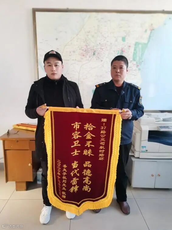 “我是专程来给37路驾驶员时培环师傅送锦旗的。”12月16日上午,乘客刘先生拿着一面印有“拾金不昧,品德高尚;市容卫士,当代雷锋”的锦旗来到了公共汽车公司二公司调度室。