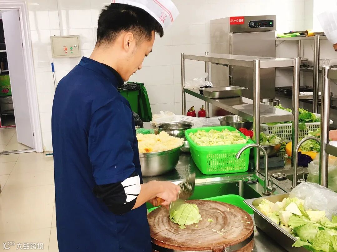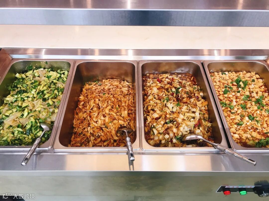 食堂生、熟食保鲜柜24小时通电,按食物存放时间、温度要求储存。备菜时,生墩和熟墩在不同区域使用,注重食材干净、卫生。