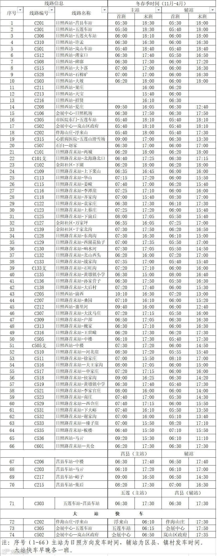 随着季节更替,自11月1日起,城乡公交一体化运营有限公司运营线路运行冬春季首末班发车时间,具体情况如下: