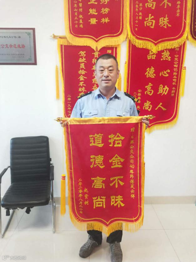 近日,40路公交车驾驶员夏云祥师傅收到一个意外的快递,—面印有“拾金不昧,道德高尚”的锦旗,让他感到意外又惊喜。
