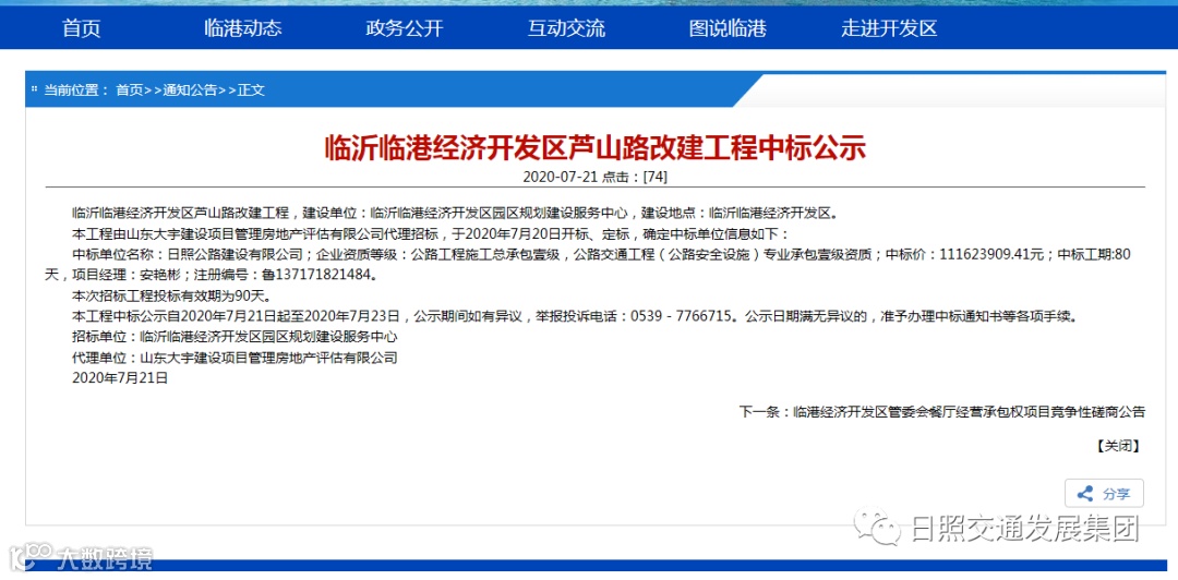 导读:蹈厉奋发 乘势前行——建设公司中标临沂临港经济开发区芦山路改建工程