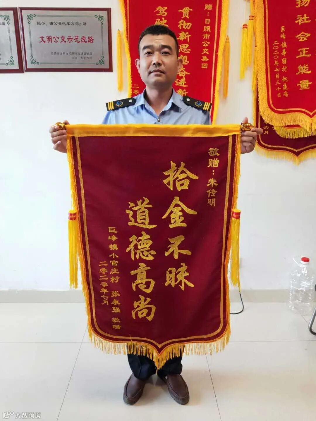 本以为此事就此结束,没想到就在7月24日,一面印有“拾金不昧 道德高尚”的锦旗通过快递邮寄到了奎山工作组办公室。失主张先生因为出差去了外地,便通过电话对朱师傅表示感谢。而朱师傅也已不是第一次因为这样的事而收到锦旗,朱师傅笑着说:“希望乘客不要遗漏东西在车上,丢物事小,着急事大。”