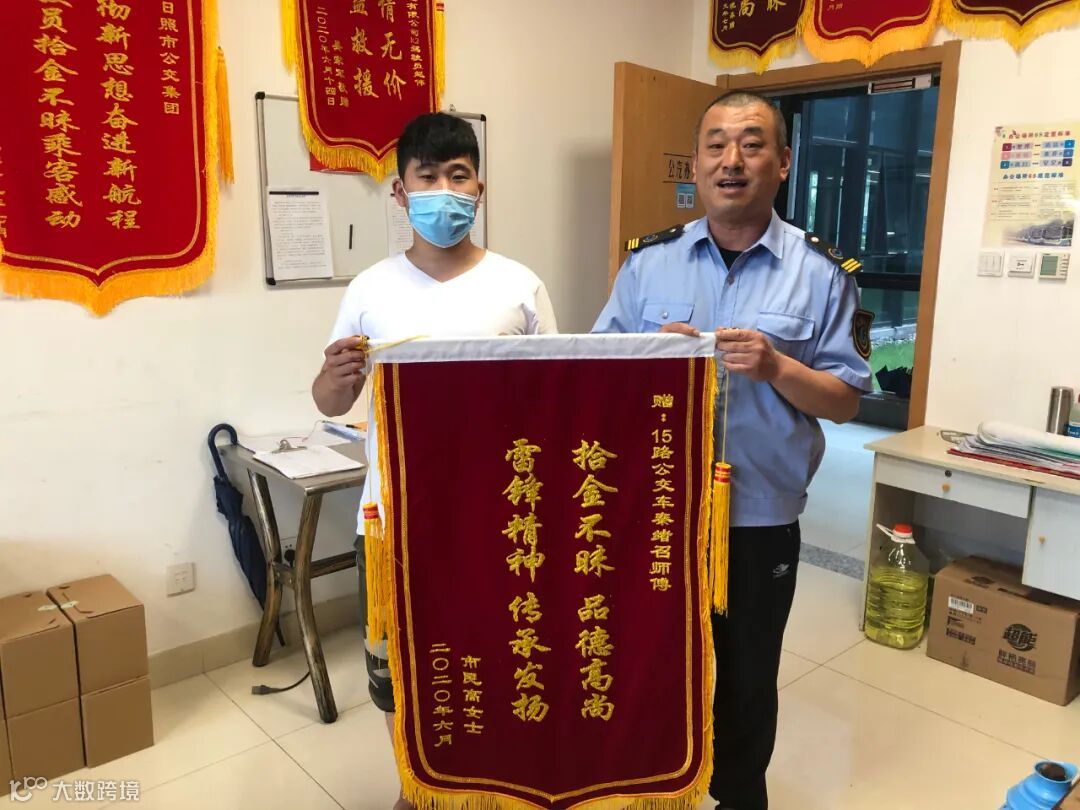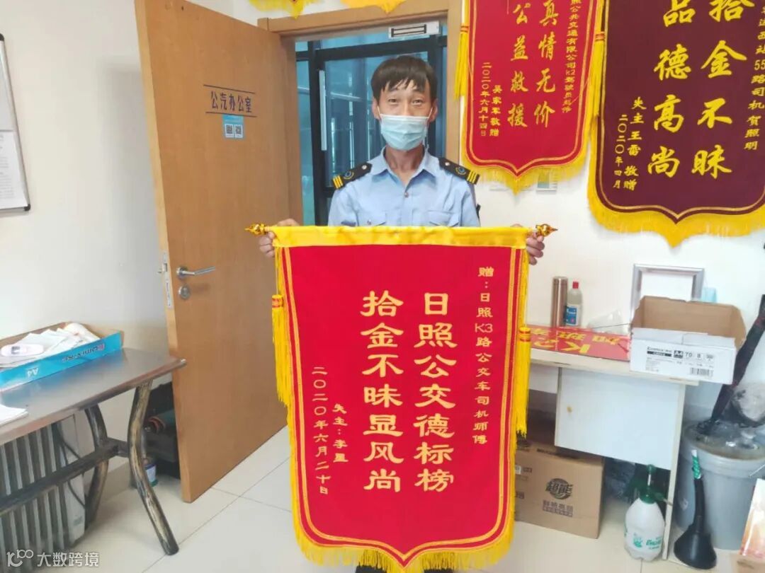 没过几天,失主李小姐携带一面印有“拾金不昧显风尚 日照公交德标榜”的锦旗来到奎山工作组办公室,表达对阚常凤师傅的感谢。阚常凤师傅接过锦旗后说道:“这都是我们应该做的,只要乘客丢失的物品被我们的师傅捡到,都会帮忙保管好,直至送还失主。”李小姐也表示,通过这件事,真正感觉到了咱们日照公交驾驶员的高尚品德!