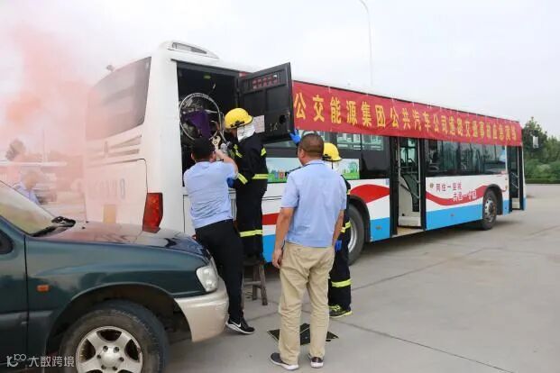 此次演练模拟一辆公交车因被一失控车辆碰撞侧后部,造成车辆燃气管路破损、燃气泄漏的情景。演练中,各参演人员按照单位《道路交通事故应急演练方案》要求和分工,明确各自在演练中的角色和职责,以场景再现的方式,通过人员疏散、现场防护、上报、报警、分级响应、应急救援、现场勘验调查等环节,迅速做出应急响应和应急处置。