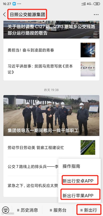 近期新出行APP进行升级优化期间,如出现更新失败或闪退等问题,请卸载现有程序,关注“日照公交能源集团”微信公众号进行下载,重新安装,详细操作如图所示。