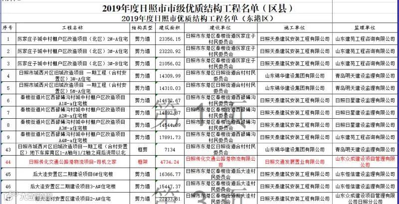 近日,市住建局公布了《2019年度日照市市级优质结构工程名单》,置业公司颐养健康产业综合体、传化物流公路港2个项目荣获 2019年度“日照市市级优质结构”荣誉称号!