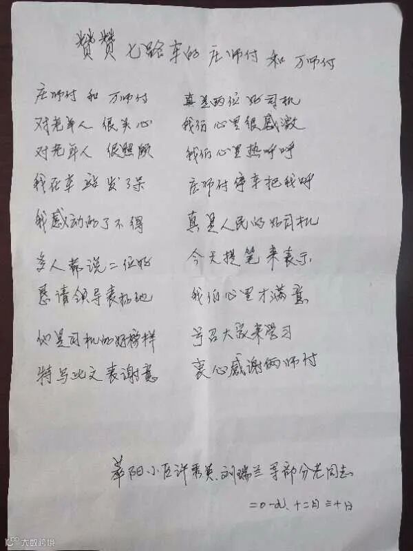 作为一名线路长,李生把团队建设当成首要大事,打造了一支作风优良、团结协作的优秀队伍。7路公交车因途径较多的学校、生活区、商超,因此老年乘客群体占比较高。而在这些老年乘客中,又有很多是忠实的7路“粉丝”,他们经常会把对7路师傅们的爱写成表扬信或者诗歌发到公司来,从中我们也读出了为人民服务的幸福感与满足感。