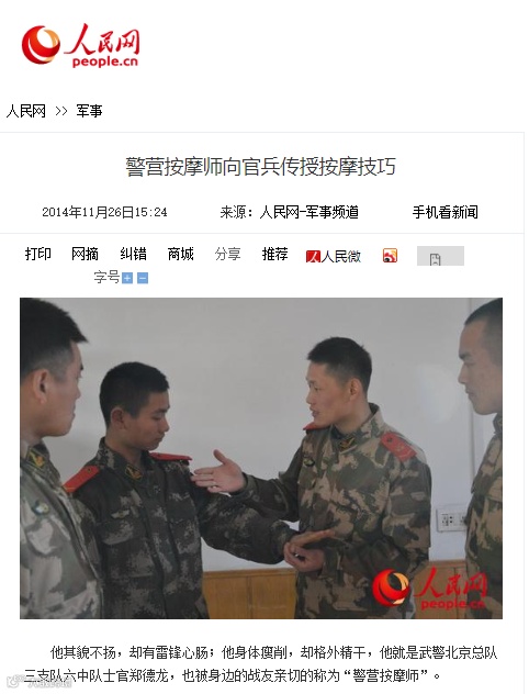 郑德龙,出身中医世家,祖父行医半生,医德医术颇受赞誉,耳濡目染下,他逐渐喜爱上推拿,长此以往,渐渐将祖传手法融会贯通,形成一套独特的按摩手法。在武警总队时,他被身边战友亲切地称为“警营按摩师”,利用空闲时间为身边战友做放松训练。渐渐地,他的手艺得到了战友的广泛认可,成为部队的“红人”,其事迹多次被人民网、中国军网记者频道等知名媒体报道。