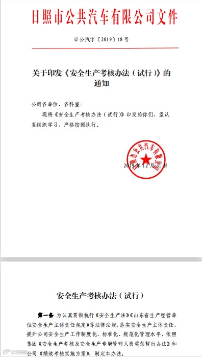 《安全生产考核办法(试行)》