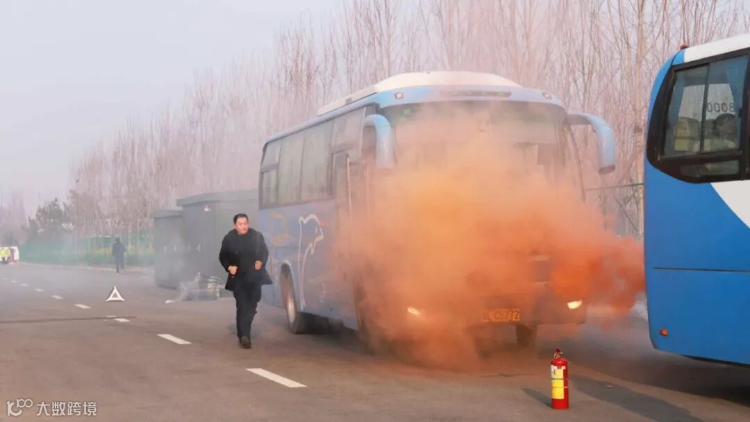 演练在日照市柳州路西首进行,模拟两辆客车被撞后致前车后部冒烟起火,并迅速蔓延到车厢,车内十余名乘客被困的事故现场。