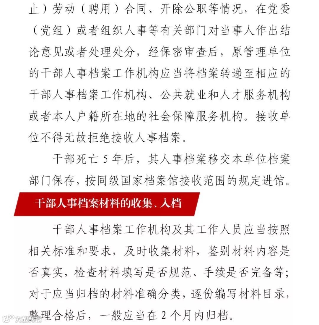中共中央办公厅印发《干部人事档案工作条例》(以下简称“条例”),并要求各地区各部门认真学习、遵照执行。《条例》从体制机制、材料内容、日常管理、利用审核、纪律监督等多个方面对干部人事档案工作加以规范,是推动干部人事档案工作科学化、制度化、规范化的有力抓手。《条例》还有哪些内容?干部人事档案工作还应遵循哪些要求?我们来继续学习吧!
