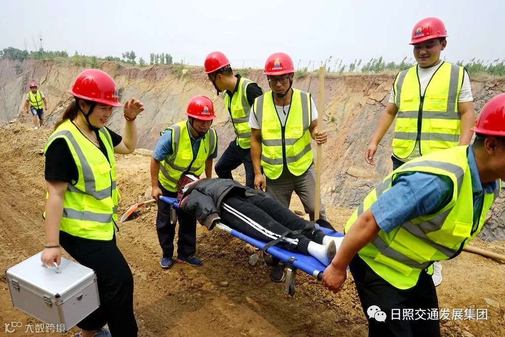 在模拟矿区坍塌事故中,模拟浮石坠落压伤1名施工人员,现场安全员立即根据流程逐级汇报,公司迅速启动应急预案,医疗组第一时间奔赴现场抢救伤员,抢险组前往塌方矿区进行安全维护,并指挥装载机对塌方处进行浮石排险。