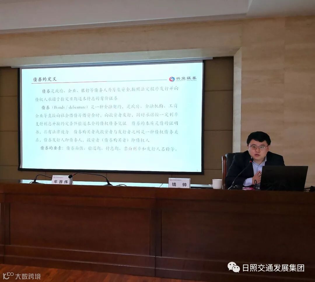 此次培训,邀请兴业证券山东分公司直属三部总经理钱帅和高级理财顾问刘伟龙,讲解了公司债券和资产证券化知识,详细介绍了债券概念要素,分析对比了债权融资与股权融资、债券市场未来发展前景等内容。