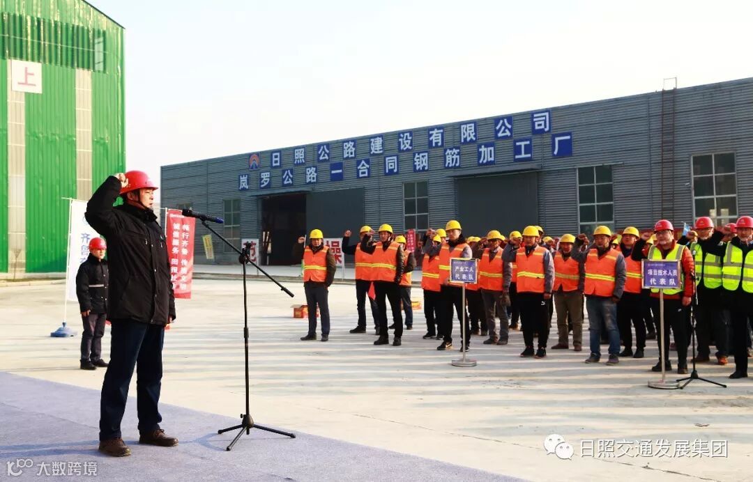 9时9分,誓师大会正式开始,项目部负责人、安全质量负责人、新员工代表、协作队伍代表分别做了热情洋溢的表态发言,最后全体员工庄严宣誓:创建平安工地,筑造品质工程,传承工匠精神,建设绿色公路,保进度树形象,为日照交通发展集团增光添彩!