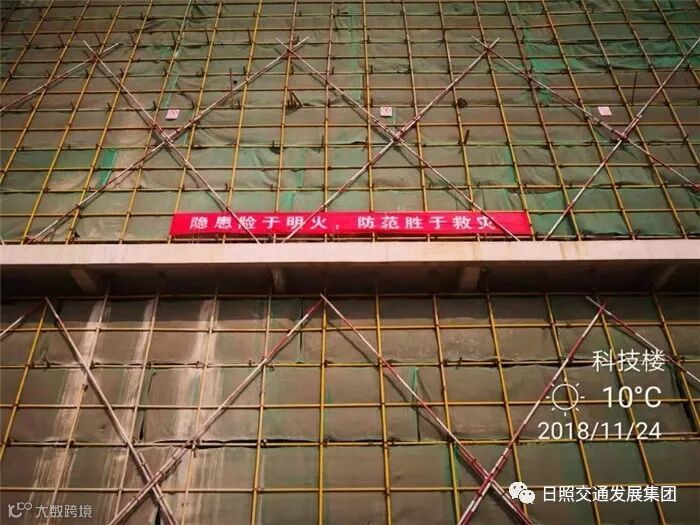 在各项目施工现场悬挂消防安全标语,着重对消防安全关键岗位人员讲解风险点。
