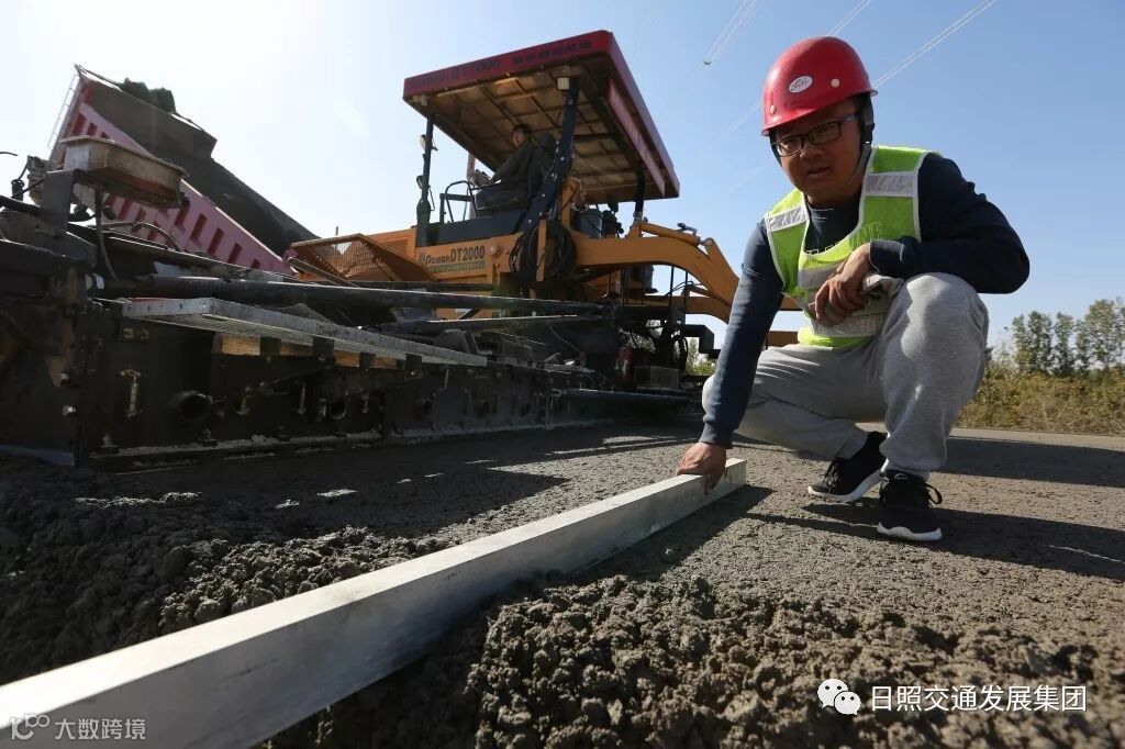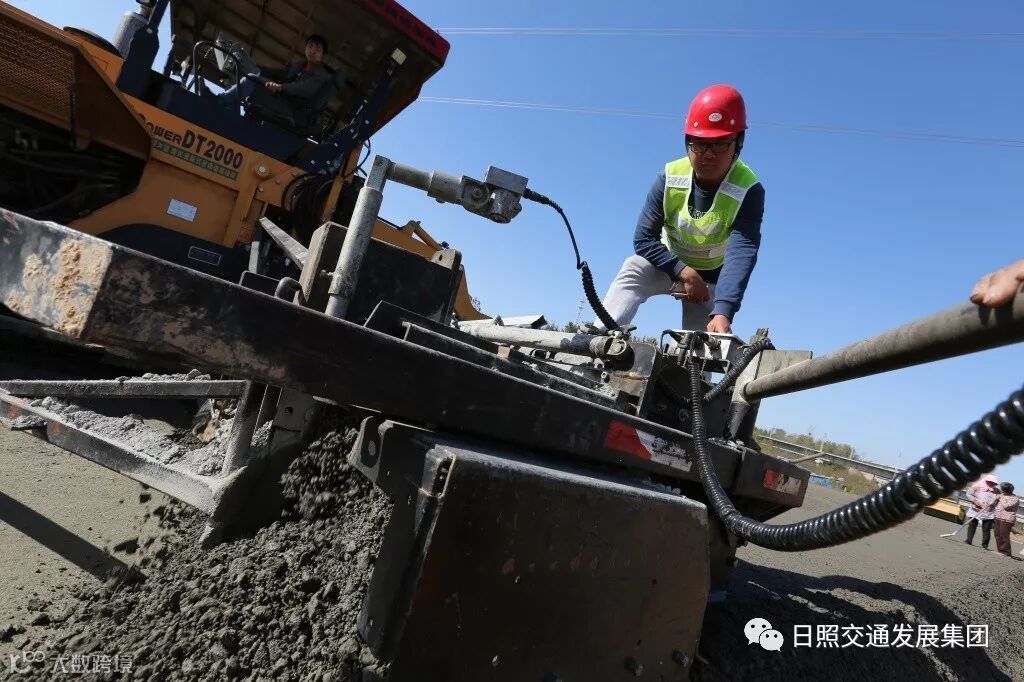 我们走到开发区段的基层摊铺现场停了下来,同事小赵矫健的跃下边坡,拍下了好多珍贵的施工资料,遗憾的是这里离机场太近,又在飞行区,我们的航拍只能取消了。现场技术人员特别的忙,我们不忍打扰,拿起相机,回放小赵拍摄的照片。起先是蓝天白云,长路蜿蜒,大片的感觉,让人不禁想到诗和远方。再看画面里是依次排开的摊铺设备和在路上紧张工作的施工人员,这就是野外施工的真实写照。在路上站了短短一会儿,毛衣就被风钻透。心想,在这路上站一天,早晚一定很冷;饭菜在这里摆上,不待吃完就得凉透。想到了一句话:哪有什么岁月静好,不过有人替你负重前行。