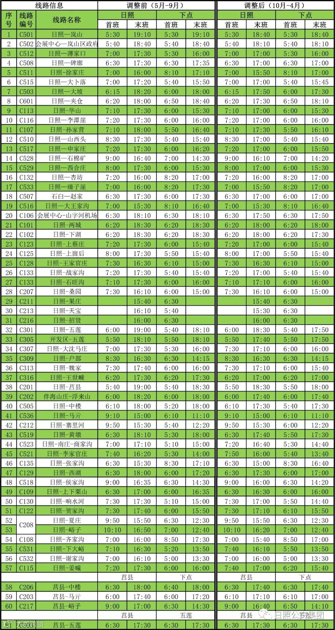 随着季节更替,为满足广大市民乘坐公共交通出行的需求,自10月1日起,城乡公交一体化运营有限公司将调整部分运行线路的首末班发车时间,具体调整情况如下: