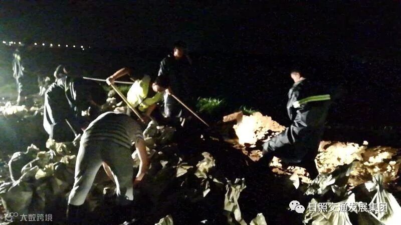 本次抢险从下午4点开始,共投入挖掘机4台、装载机2台,雨衣水靴24套,铁锹20把,铁镐5把,共装垒沙袋1000余袋,加固河堤100余米。在风中,用斗志战胜风的阻力;在雨中,用汗水抵御着雨水的侵袭;风雨中留守的抗洪抢险小分队已准备好沙袋,坚守阵地、严阵以待。凌晨1点,圆满完成了防汛抢险任务。