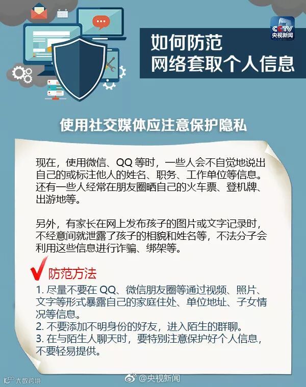 个人信息泄露已不是新鲜话题,被泄露信息者轻则频繁被“精准”骚扰,重则可能遭遇电信诈骗、套路贷、敲诈勒索等恶性事件。如何防患个人信息被套取?如何避免个人信息泄漏?央视新闻分享了一组图,七大“套路”警惕防范!