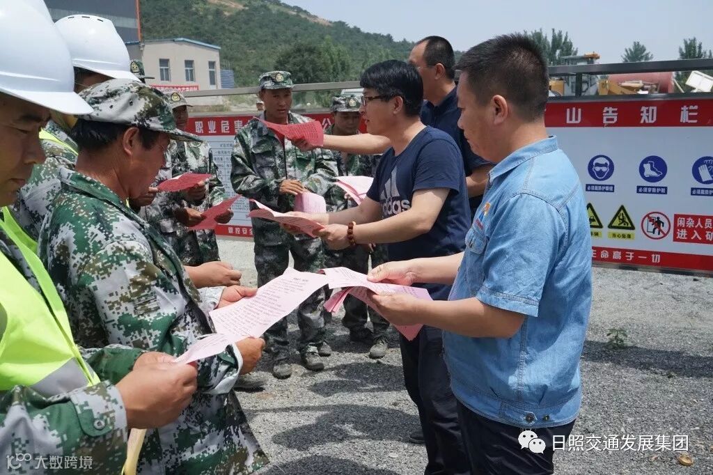 投资公司五莲吕街项目部到工地现场和沿线村庄发放安全生产宣传单,提高从业人员安全生产意识,提醒沿线村民注意出行安全。