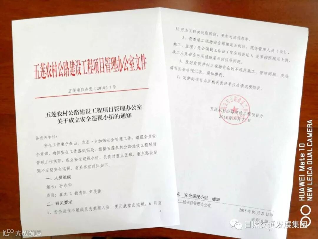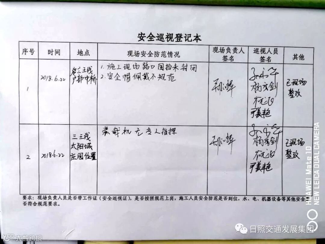 近日,五莲农村公路建设工程项目管理办公室结合集团安全生产月活动,在施工单位自查、监理单位专项检查的基础上,再增加一道安全防线,抽调人员组成安全巡视小组,对重点区域、重点路段的安全措施是否到位,现场管理人员(设计、施工、监理)是否佩戴工作证、安全巡视证,是否按照规范上岗,施工人员安全防范措施是否到位等开展常态巡视。