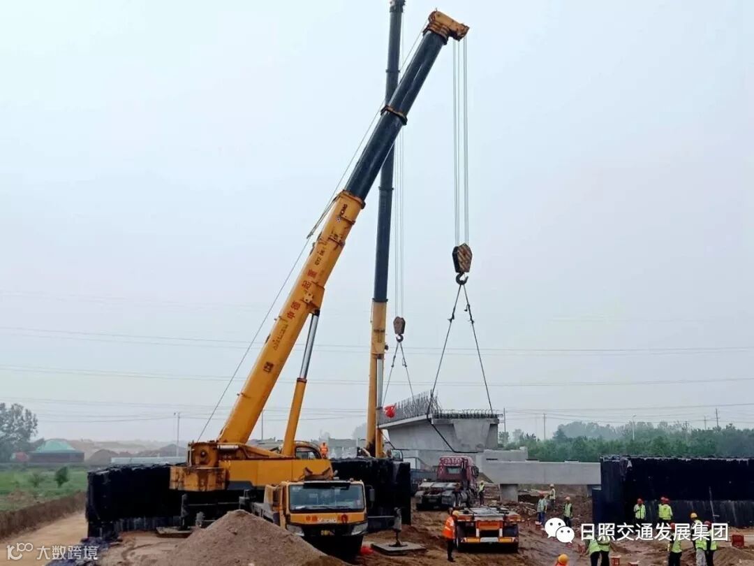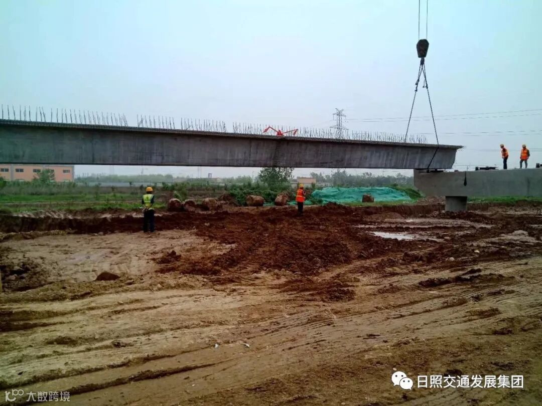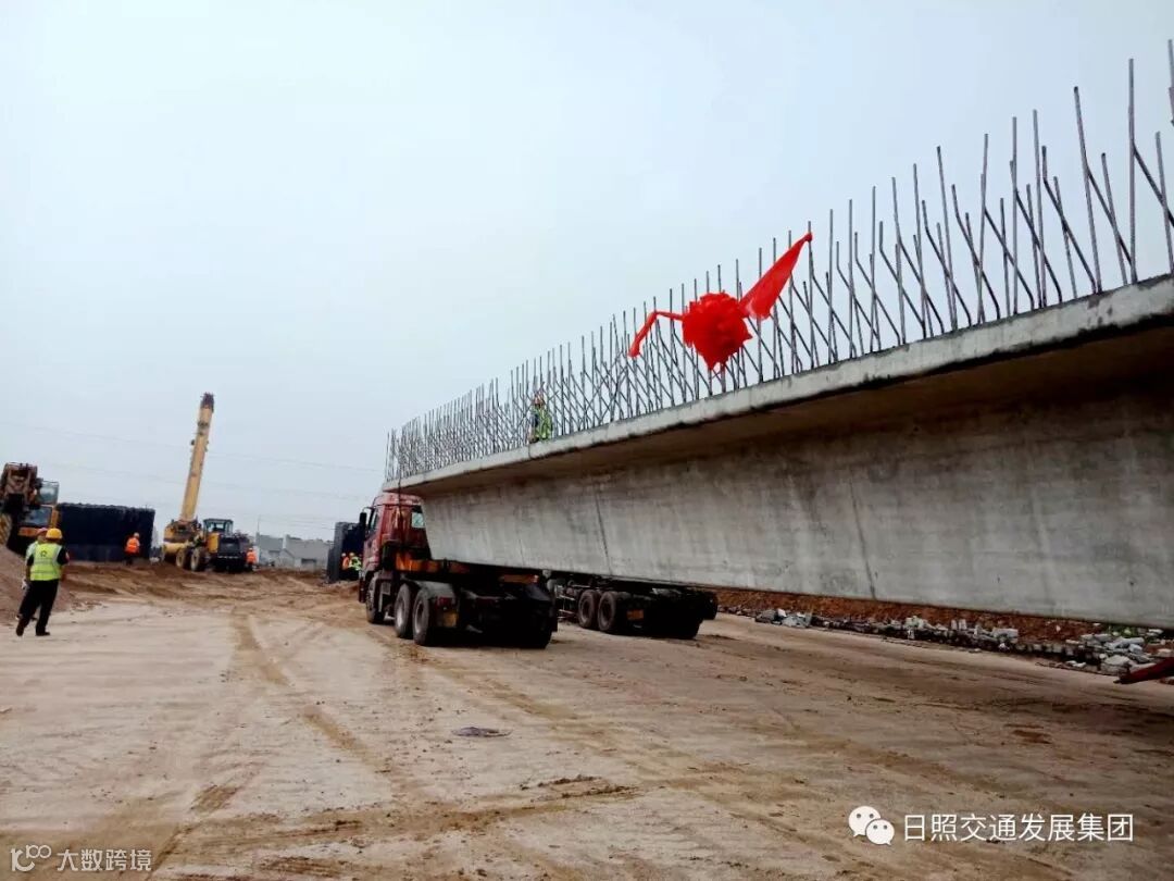 这是全线架设的第一片30米箱梁,拉开了深圳路分体立交预制箱梁架设的序幕,进入上部结构施工阶段。