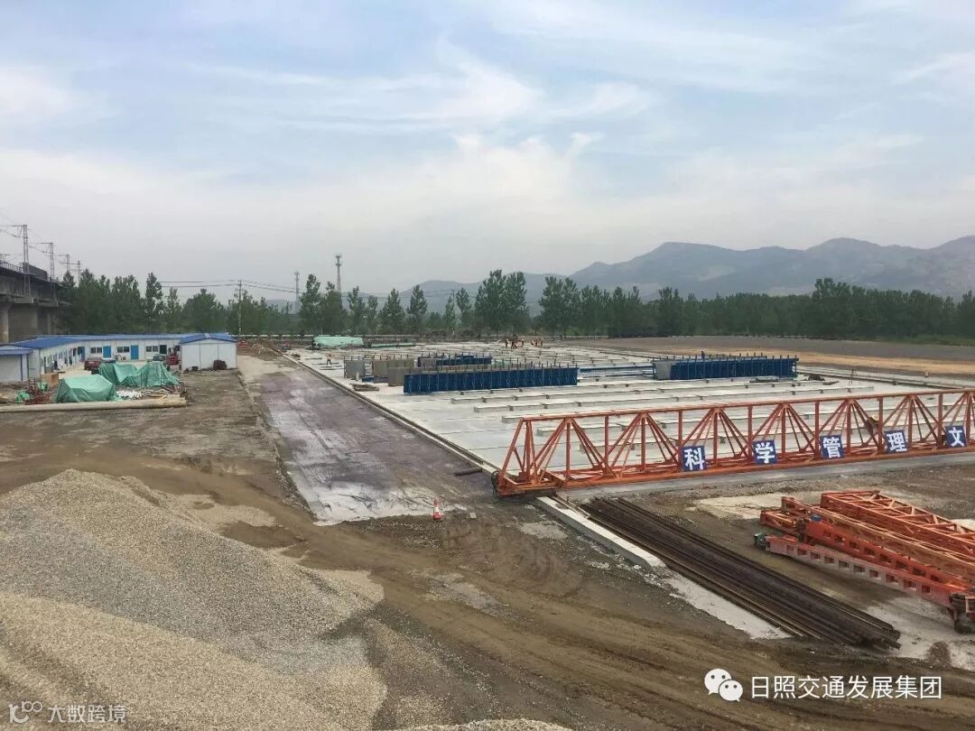 近日,岚山预制场正式投产使用,生产的第一片预制箱梁用于黄海路西延工程222省道分离立交桥浇筑。