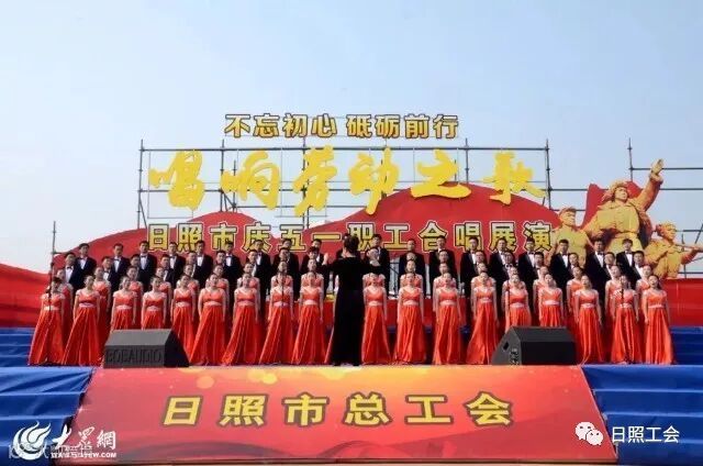 为隆重庆祝五一国际劳动节,大力弘扬劳模精神、工匠精神,积极营造劳动光荣、创造伟大的社会氛围,团结动员广大职工为推进新旧动能转换、实现高质量发展、加快建设现代化海滨城市做出积极贡献市,总工会于五一劳动节期间隆重举行了日照市庆五一职工合唱展演,全市共有24支队伍,2000余名职工报名参加了合唱。