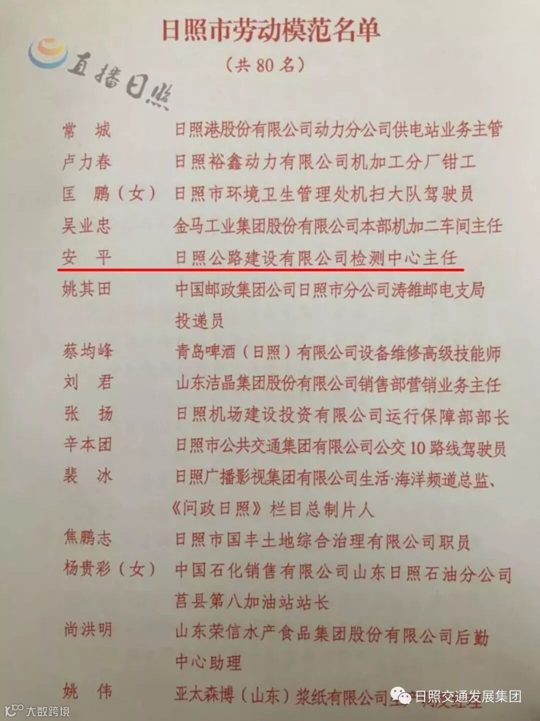 ↑4月25日,在全市庆祝“五一”国际劳动节大会上,建设公司安平同志被授予“日照市劳动模范”荣誉称号。
