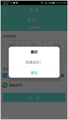 点击“充值”按钮选择相应金额,进行充值。充值成功后虚拟卡界面显示可用余额。