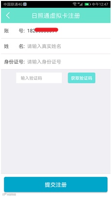 点击公交“新出行”主界面“日照通”下“扫码乘车”功能。弹出日照通虚拟卡注册界面,输入“姓名”、“身份证”,点击“获取验证码”并输入,提交注册。如手机号,姓名、身份证三者合一,系统自动通过审核。