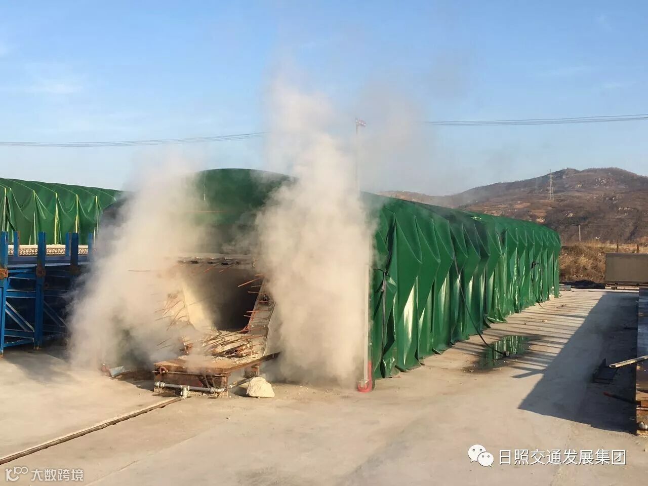 同时,购置钢筋弯曲中心,钢筋弯箍机等钢筋加工设备,提高钢筋加工精度及下料效率;购置智能张拉及压浆设备,实现智能化施工;引入燃气锅炉、蒸汽管道及折叠式养生大棚,采取有效的冬季施工措施,为加快冬季施工进度做保障。