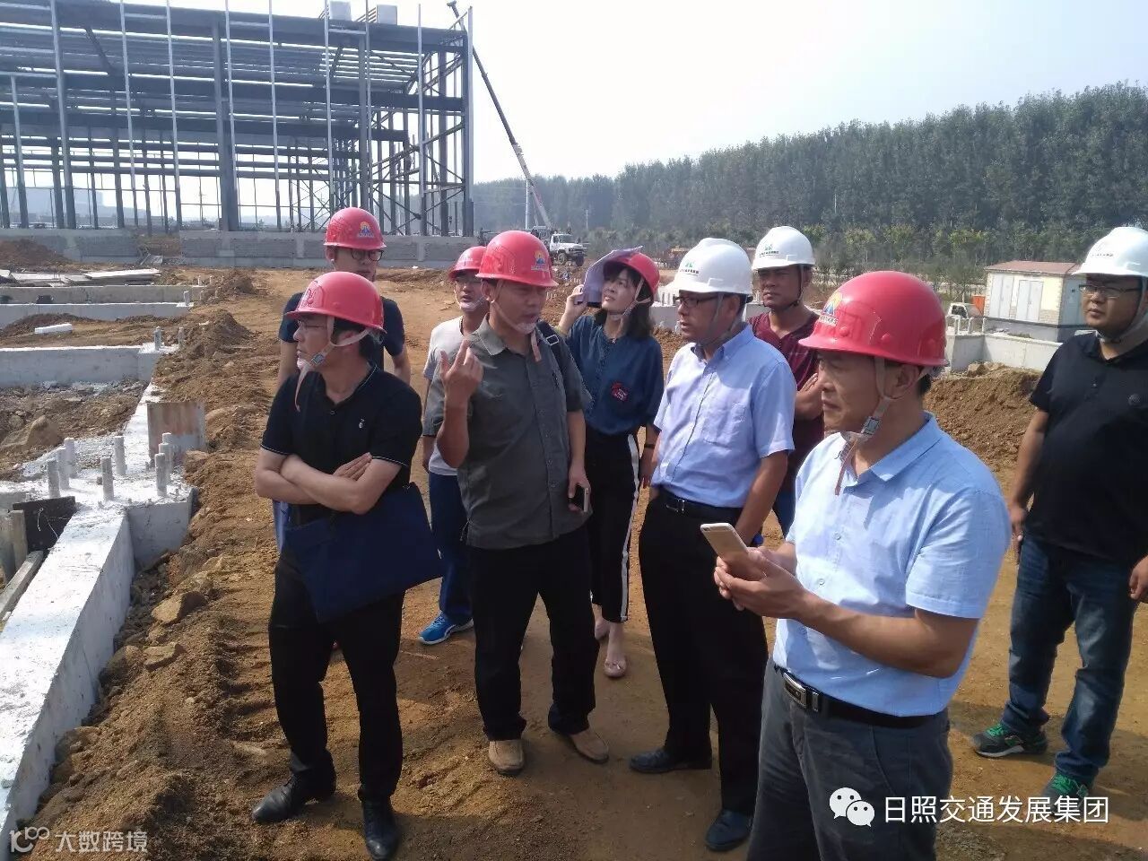 ②检查组检查厂房建设施工现场,专家现场教学