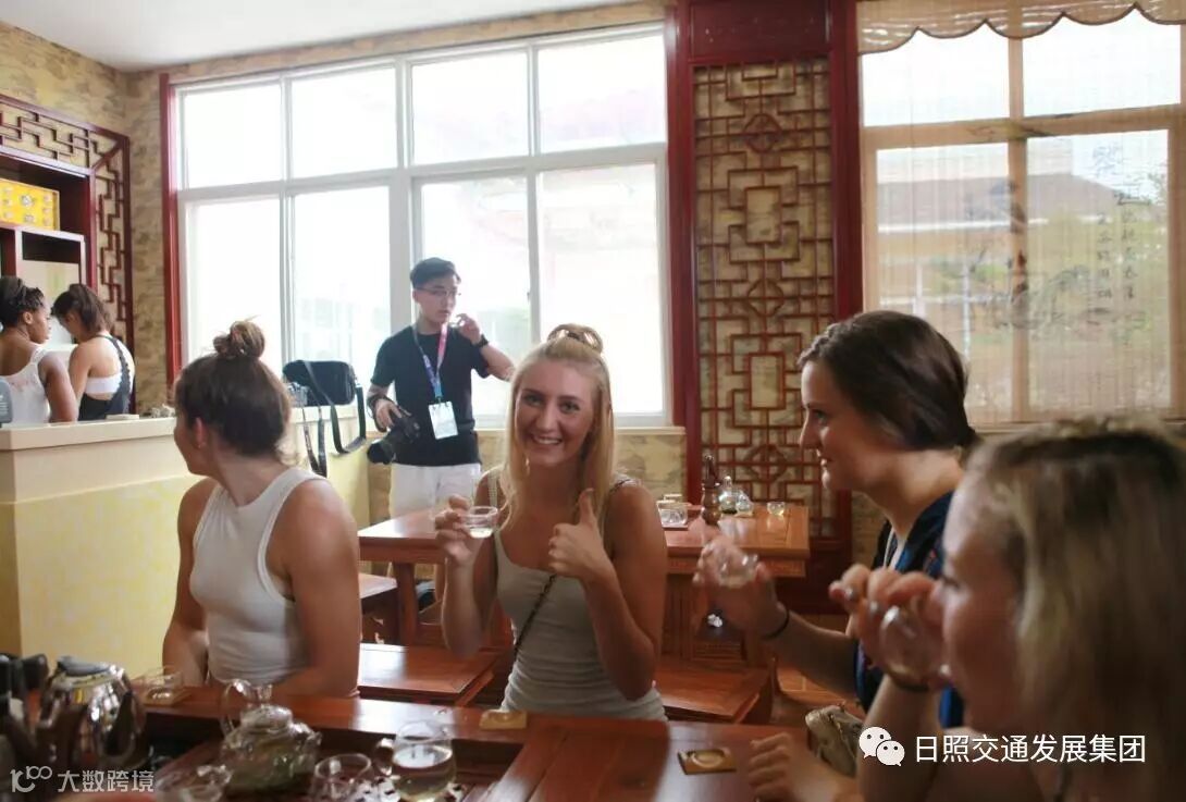 7月27日,首届中国(日照)国际啦啦操精英赛加拿大代表团在赛事组委会的带领下,来到山东日照公路茶业有限公司祥路碧海茶园参观了解中国茶文化。
