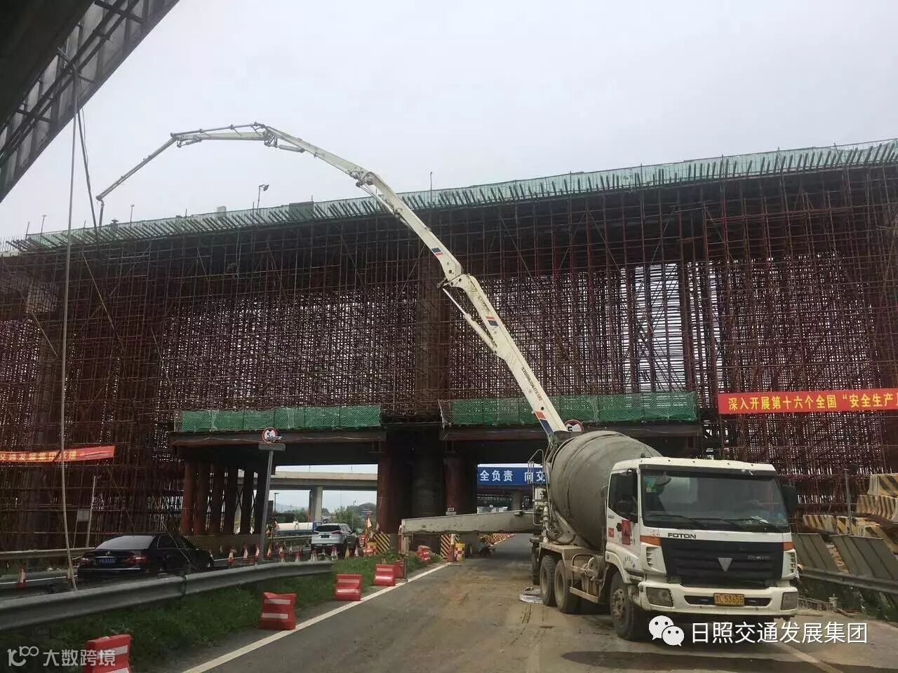 机场高速日照南互通立交跨越沈海高速主线部分于4月5日开始施工,8月23日实现现浇主体全部完成。日照南互通区上部剩余现浇箱梁主体计划10月底全部完成;上部结构桥面系、附属工程正在进行流水作业施工,计划11月底全部完成。