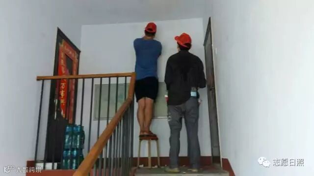 7月22日,市残联分两组到星海小区清理小广告,粉刷墙面